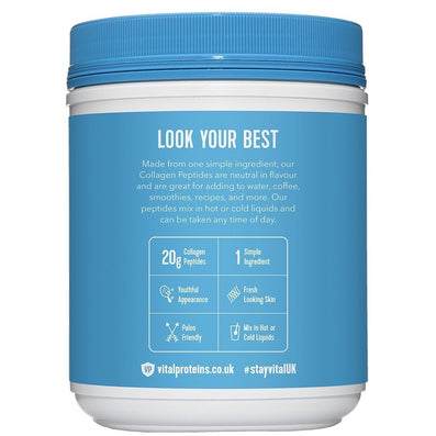 Containing just a single ingredient, this powder contains bio-available Collagen Peptides, meaning that they are easily digested and absorbed by the body. Collagen is found in all our connective tissues, tendons, ligaments, and bones. As we age our bodies become less efficient at producing Collagen, so this dietary supplement provides 20g of nourishing Collagen to support your body's own production. Sourced from grass-fed, pasture-raised stock, these Collagen Peptides are paleo-friendly.